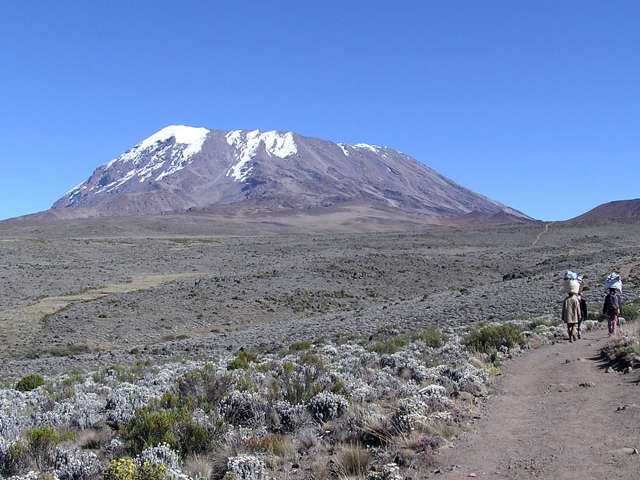 Leaving Shira camp in the morning you climb towards the main peak Kibo, with the western glaciers clearly visible across the rugged high-altitude desert of volcanic rocks and boulders. The trail ascends to the Lava Tower site (15000 feet / 4600m) before descending back down into Barranco Valley. Its 6 to 7 hours walking and the total ascent is only 110m total but having climbed much higher and dropped back down assists acclimatization.